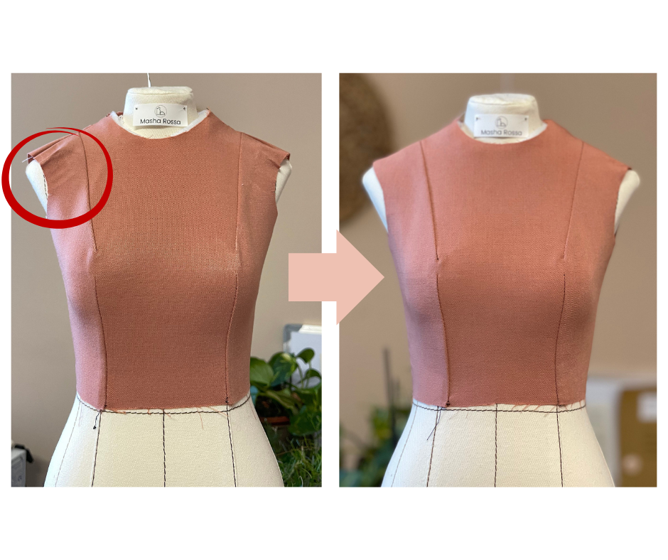 Spostala nel fianco.Così il corpino diventa più “morbido” e la correzione della spalla risulta precisa.