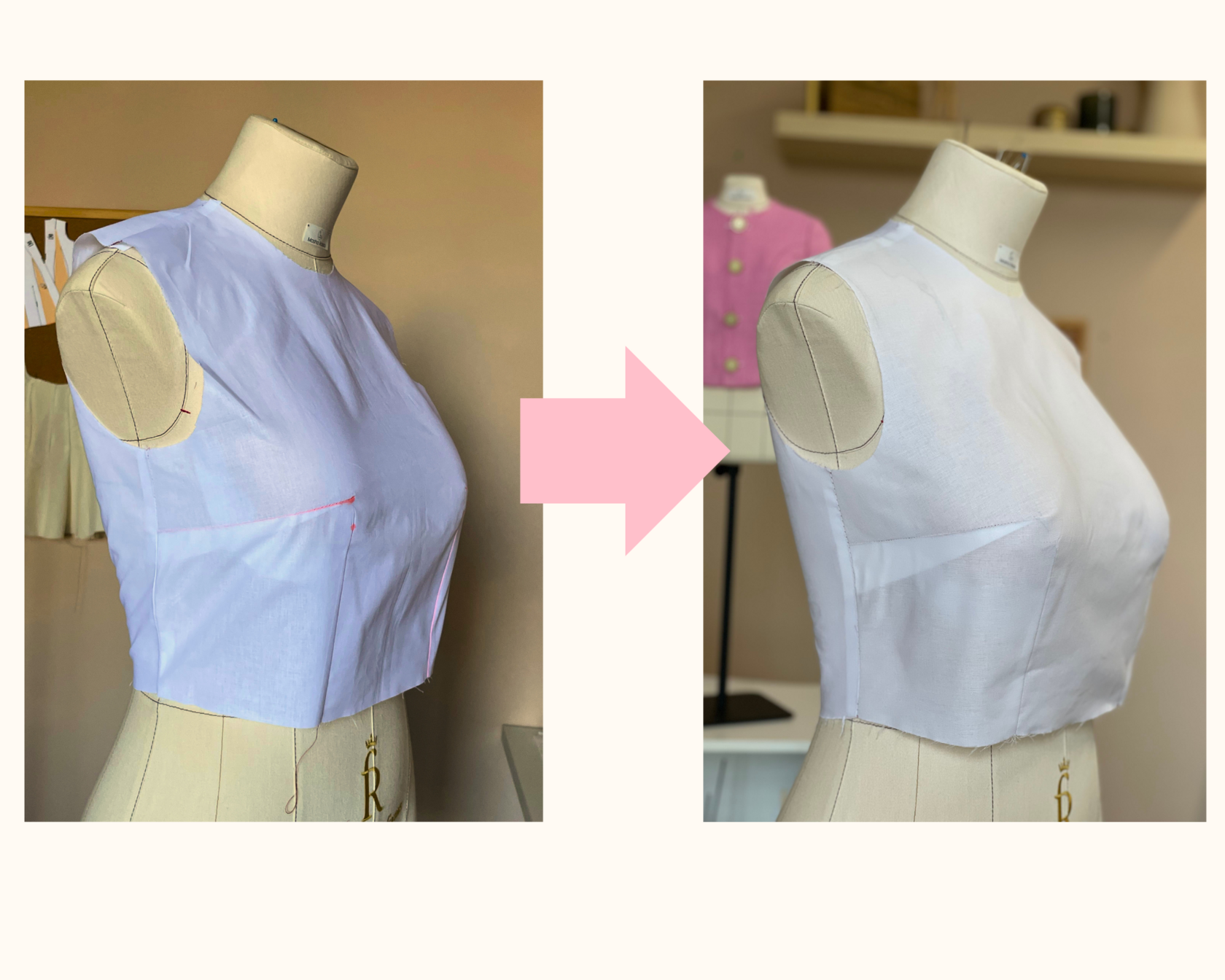 Disegna le nuove pince (vita e seno) adattandole alla nuova forma.